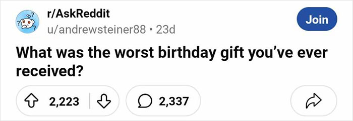 To find out how this conversation started in the first place, we reached out to Reddit user Andrewsteiner88, who invited others to share the worst birthday presents that they've ever received.