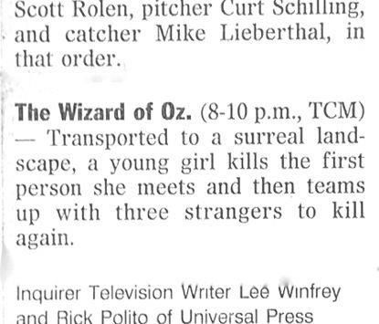 The BEST is the famous TV Guide plot synopsis in 1998 for "The Wizard of Oz"