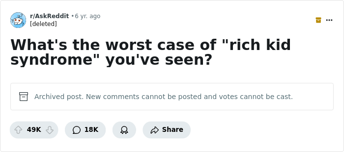I wouldn’t say rich kid but definitely spoiled brat who thought he was rich. Befriended him in 5th grade over our interest in the Yugioh trading card game. First time I hung out at his place I noticed just how littered with stuff his room was. Some even unopened.