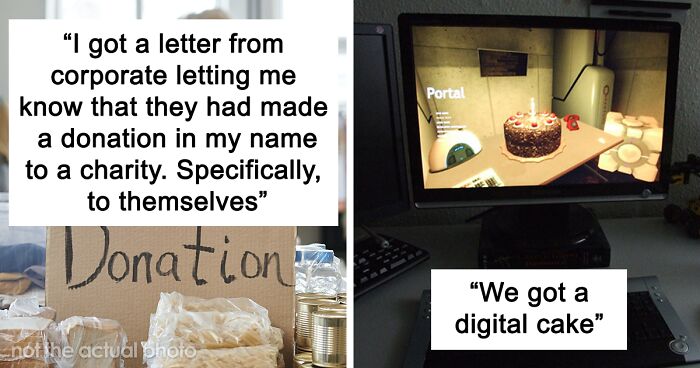 I got a letter from corporate letting me know that they had made a donation in my name to a charity. Specifically, to themselves (I work for a non-profit)