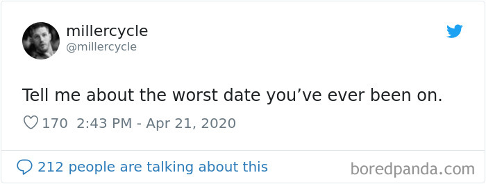 But some dates are way worse than others. So when Twitter user miller cycle asked people to share the worst dates they’ve ever been on, the treasure chest was opened. From buying drugs on a first date to hearing someone cough in the closet only to find out the husband was about to shoot some action movie, these stories are what your nightmares are made of. Even if nobody was born killing the dating game, the worst date moments below show how some folks have killed the spark for good.