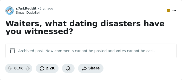These restaurant employees are sharing the worst dating fails they’ve witnessed firsthand. If you have your own experiences, feel free to share them below!