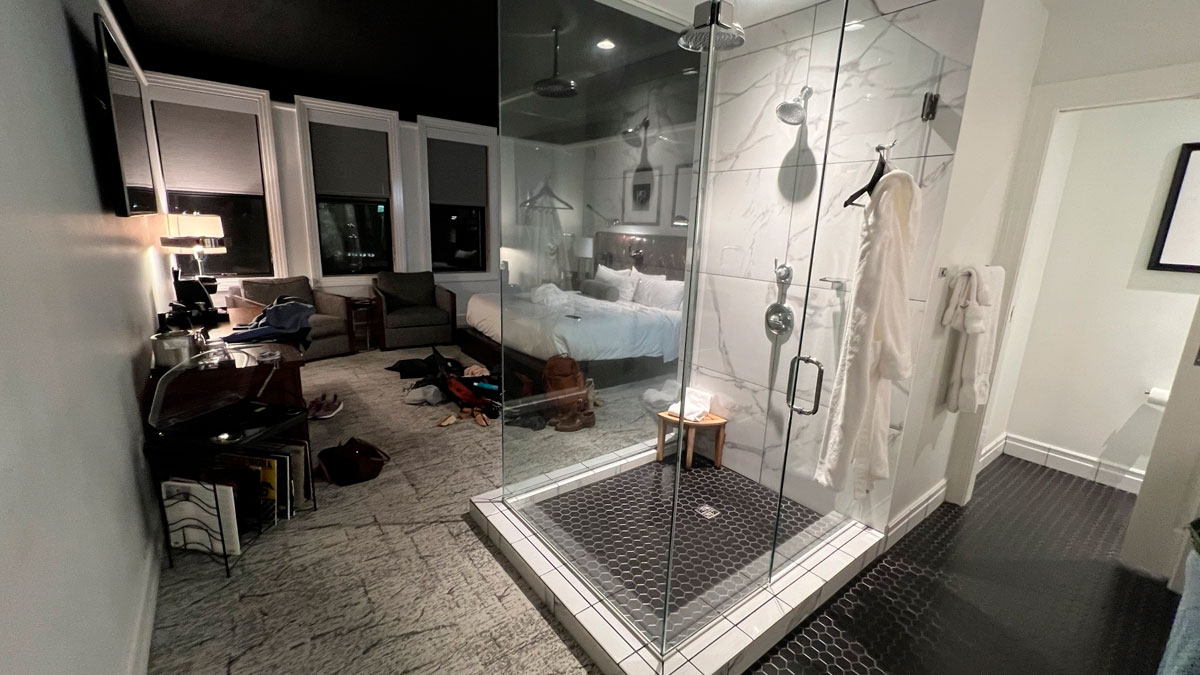 The Shower In My Hotel Is A Glass Cube In The Center Of The Room