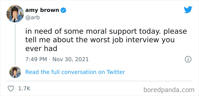 And nothing illustrates this better than one recent Twitter thread — it started when Amy Brown from California, seeking moral comfort, asked other users to share their worst job interview stories. Turns out, it was all they needed. Recruiters and applicants alike immediately started describing the trainwrecks they were a part of.