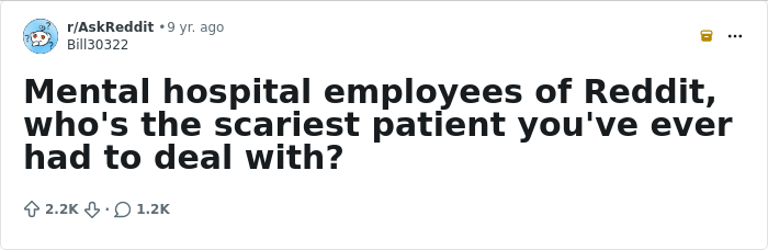My mothers has been a psychiatric nurse for almost 30 years. She always says the scariest people in this world are usually the sane ones, not the mental patients. However I can think of one or two f****d up things shes told me over the years.