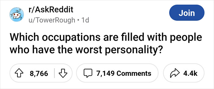 Someone asked “Which occupations are filled with people who have the worst personality?” and netizens shared their experiences. From petty tyrants to sociopaths looking to get rich, get comfortable as you read through, upvote your favorites, and be sure to share your own thoughts and experiences below. Bored Panda got in touch with OP to learn more.