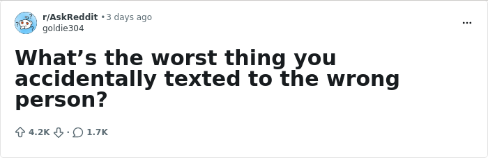 There are a lot of ways to make a fool of yourself. Some are grand, some are subtle, but there's one that's especially reliable. A few days ago, Reddit user Goldie304 asked others on the platform to share the worst thing they accidentally texted to the wrong person.