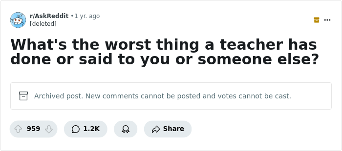 But let’s be real, not every teacher fits that bill. Some make school feel more like a horror movie than a place to learn. Curious, someone on Reddit asked, “What’s the worst thing a teacher has done or said to you or someone else?” And wow, the replies did not disappoint. Bored Panda rounded up some of the most jaw-dropping responses. Get ready to cringe, gasp, and maybe remember a story or two of your own.
