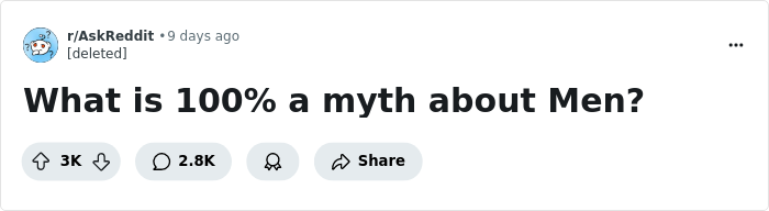 Someone asked “What is 100% a myth about Men?” and people online decided to set the record straight. So get comfortable as you scroll through, upvote your favorites and be sure to share your own thoughts, examples and experiences in the comments section down below.