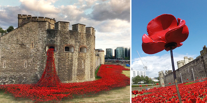 This summer, the Tower Of London will be surrounded by a sea of crimson. This installation, conceived by artist Paul Cummins and designer Tom Piper, will commemorate each and every British or Colonial fatality from World War 1 by planting 888, 246 red ceramic poppies in a flowing sea around the tower.