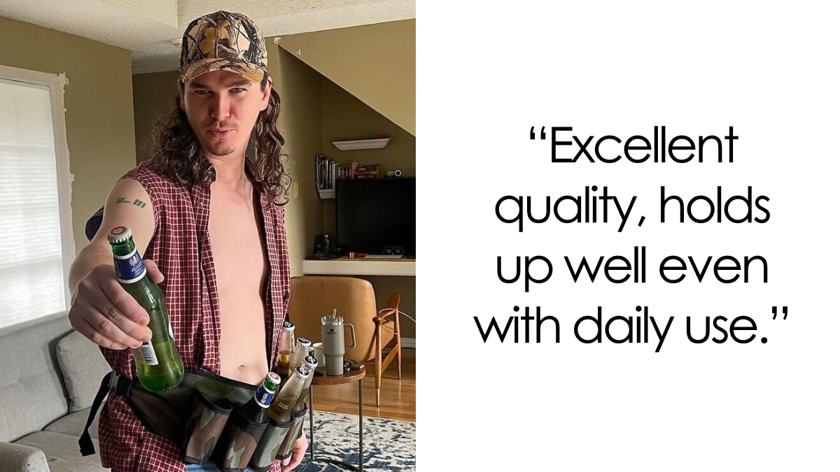 Review: "Makes a great gift for the beer lover in your life. Sturdy and holds 6pk cans or bottles. Adjustable strap. Highly recommended!" - Laura