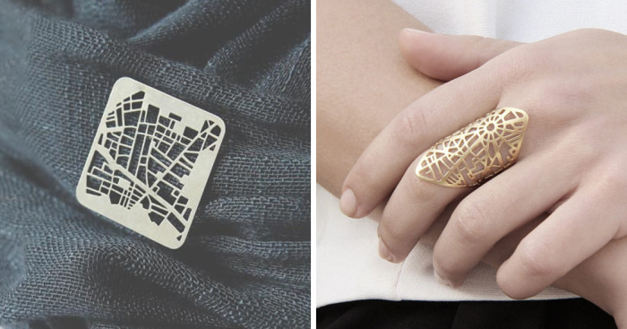 For the past few years, I've been turning street maps into jewelry. I started with a collection of nine cities close to my heart. Requests to create new maps started flowing in, and I decided to develop a system that allows anyone to design and create their own.