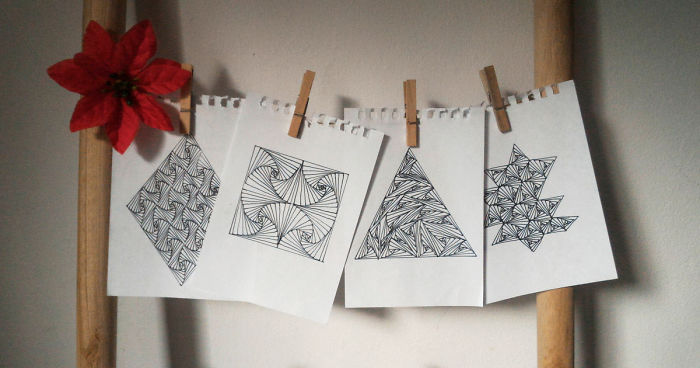 Drawing an optical illusion pattern is easier than you think. Let me show you a trick. You only need to draw triangles or rectangles and the result will be amazing. But instead of reading, grab a paper and a pen and follow the instructions below. (you can variate the pattern by changing the starting side of your shape)
