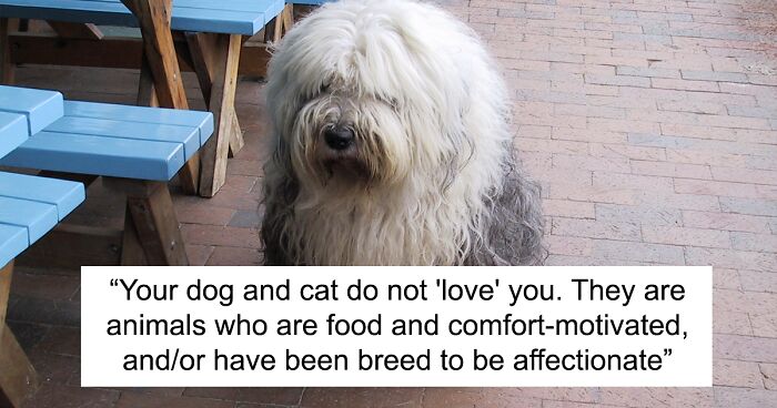 Load More Replies...This was truly idiotic, she didn't even bother to check the tests that have taken place that shows our animals adore the hell out of us and vice versa. https://www.theguardian.com/lifeandstyle/2019/jul/16/do-our-pets-ever-really-love-us-or-do-they-just-stick-around-for-the-food https://www.theguardian.com/lifeandstyle "To storge, familial love. It won’t surprise you to learn that dogs, more than any other pet, exhibit oodles of this form of love for us. And, unlike most other pets, these attachments have been the subject of many scientific studies. The science confirms what we knew all along, that most dogs actively choose proximity to humans and, within a few months of being born, a puppy’s attraction is clearly toward people rather than other dogs. Dogs exhibit varying degrees of separation anxiety when their humans temporarily leave them. Blood pressure rates in dogs lower when they are being stroked by us. It is a form of storge that we share with one another. No question."