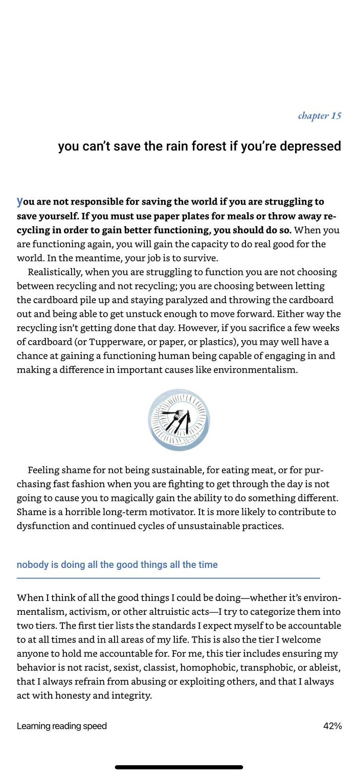 This! While I am not saying the average consumer shouldn't be trying to help the environment, I feel like the most serious help would be if the corporations and industries changed their practices. For example, I can only recycle plastic #1 and #2. Why are there so many #5? (On a separate not: Why are the plastic numbers so difficult to find/see?) Why am I not using disposable straws but the fishing industry is responsible for half the plastic in the ocean... it goes on and on.