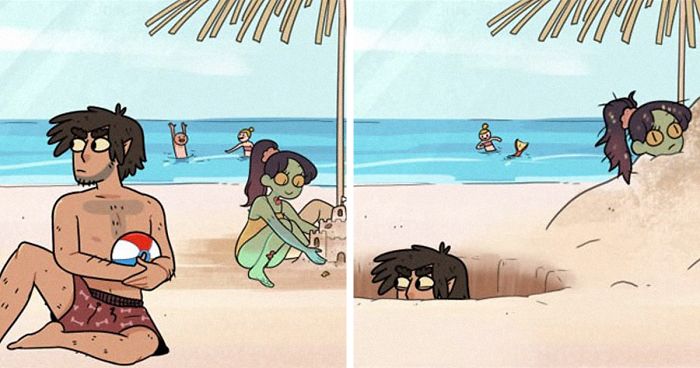 We've already shared a collection of cute Zomcom comics on Bored Panda, but Emilia has been keeping herself busy, so we just had to create another one. Bringing them from the undead, here are the adventures of a zombie girl, her werewolf boyfriend, and their weird friends.